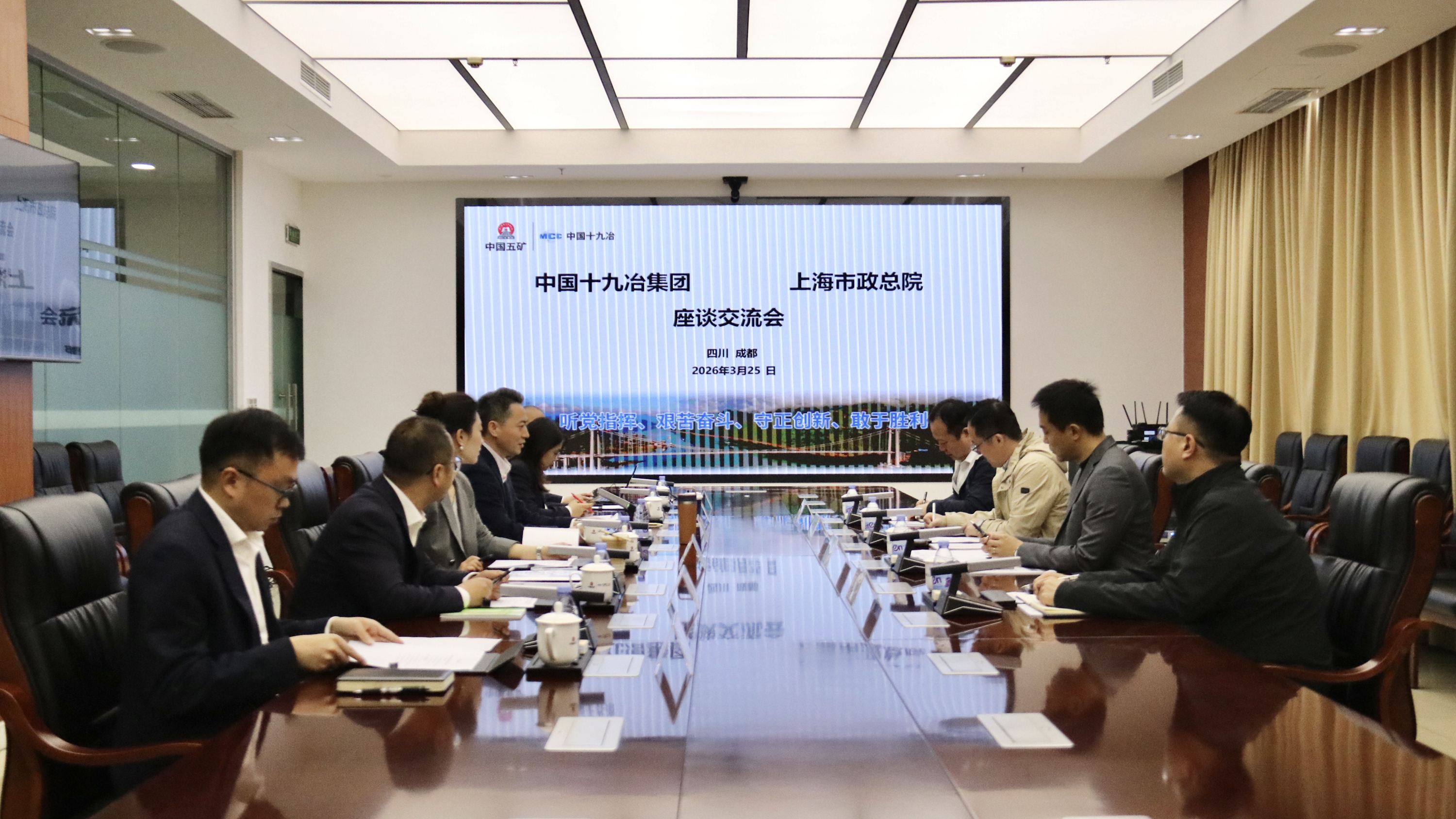上海市政總院道橋院副院長沈祺,國際業務部、西南分院成都分公司相關人員;中國十九冶市場管理部、海外事業部、路橋公司等相關負責人參加座談會。