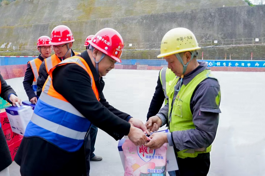 活動現場,歐成華為節日期間堅守一線的建設者送去米、牛奶、方便食品等慰問物資,向大家致以誠摯問候,并叮囑大家在搶抓施工進度的同時,時刻把安全放在首位,注意防寒保暖,做好各類防護措施,以飽滿的精神狀態投入工作。